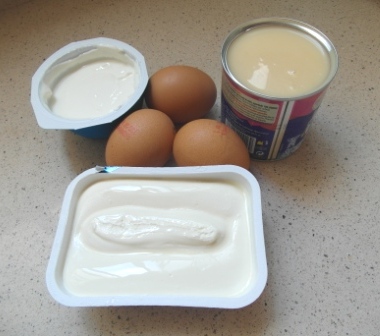 Batimos los huevos en un cuenco y añadimos la leche, el yogur, el queso y mezclamos. Por último añadimos la harina y mezclamos de nuevo. Echamos todo en una batidora de las de vaso y lo mezclamos todo hasta que quede homogéneo.