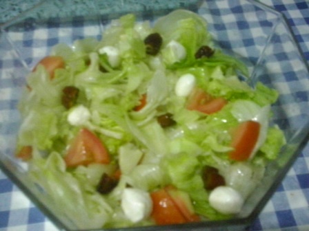 Ensalada de lechuga y dátiles con perlas de mozzarella: