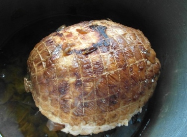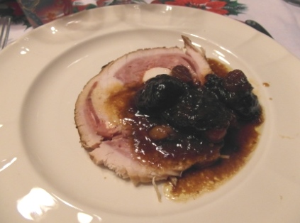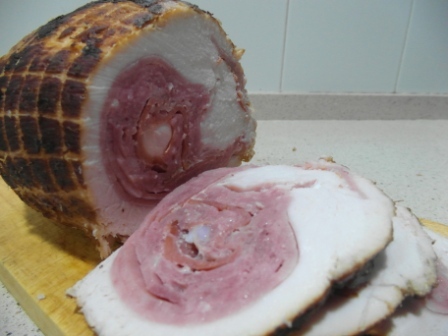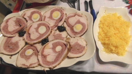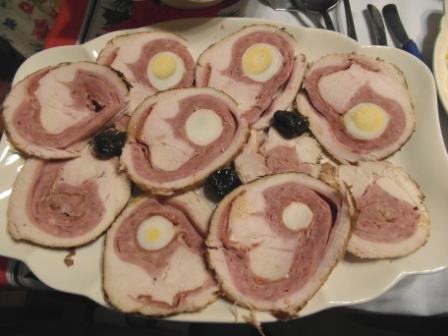 Como ya he dicho antes encargué en la carnicería un roti de pavo relleno con jamón y huevo duro que recogí el día antes.