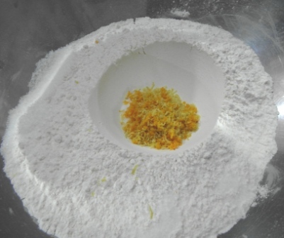 Hacemos la masa poniendo en un cuenco la harina, el azúcar, la sal, la ralladura de naranja y limón y la canela.