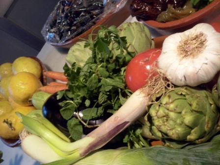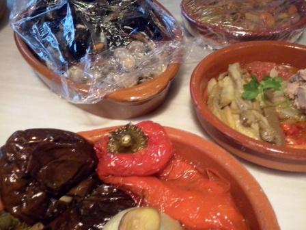 Y allí nos encontramos con unos productos de primera calidad que la misma Antonia había comprado por la mañana, verduras de Chiclana y Conil, compradas a un hortelano con huerto propio, mejillones y almejitas del Mercado.