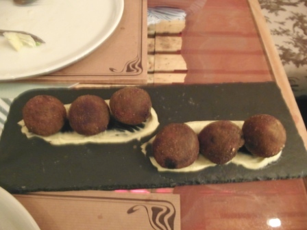 Yo conocí a Víctor Gomar, el responsable del establecimiento, un hombre encantador, amabilísimo. Héctor Sanz es el jefe de cocina y juntos forman un tandem perfecto. Víctor es un empresario muy capacitado en todo lo relacionado con la gestión y administración de empresas, pero sobre todo destaca en las relaciones públicas, su simpatía y amabilidad deja al cliente con las ganas de volver, por el trato recibido tanto por él como por los camareros. Héctor ha trabajado en el Celler de Can Roca y en la sesión de pastelería y dulces del Hotel Ritz de Madrid. Sus platos son de calidad, bien elaborados, buenísimos. Ocho he probado de la carta, cuatro cada día que he ido, y los ocho estaban exquisitos. He aquí algunos.