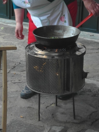 Llamaban la atención los tambores de lavadoras usados por algunos para meter la leña y el carbón, pues estas sopas hay que hacerlas con leña, es requisito indispensable.