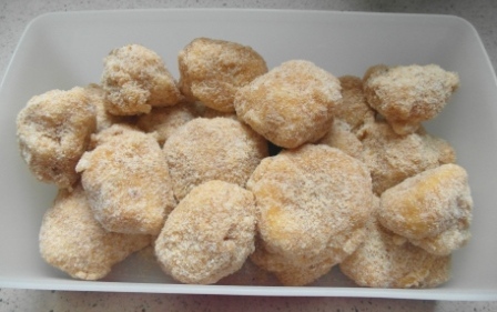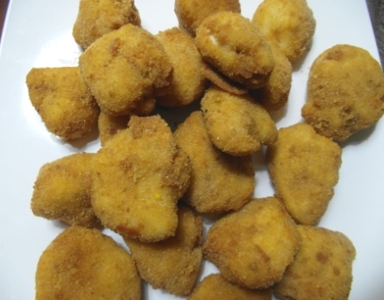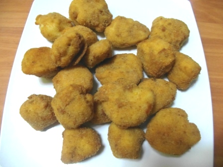Ya veréis cómo saben distintos, tienen un sabor que recuerda, naturalmente, al de los kikos, y el empanado queda más crujiente. Así variamos de vez en cuando.