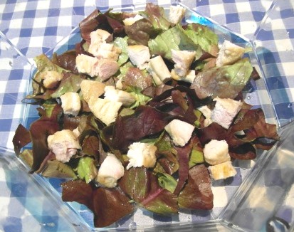 A una ensalada de lechuga se le pueden añadir muchos ingredientes, yo eché mano de lo que tenía y organicé este plato que resultó muy rico y sabroso.
