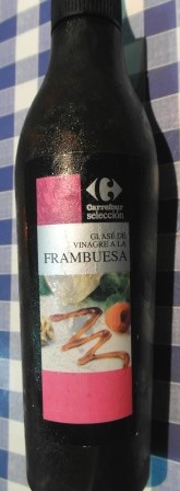 Encima ponemos el queso en rodajas y echamos el vinagre de frambuesa.