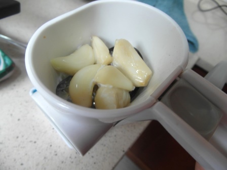Se trituran los dientes hervidos con un utensilio de los que hay para triturar ajos.