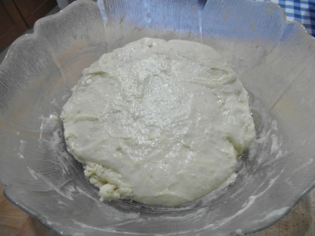 Añadimos la leche y seguimos amasando.