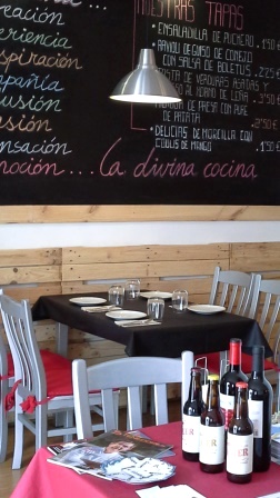 Cuando eligieron este local y se pusieron manos a la obra pensaron también en su decoración, ya que lo que vemos cuando entramos es muy importante hasta tal punto que a veces la decoración de un local nos echa para atrás. No es este el caso, entre Antonio, Eloisa López Atero y algún que otro colaborador amigo o familiar han decorado La Divina con muchísimo gusto. Y con poco dinero, que también es importante.