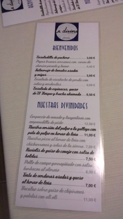 Volvamos a la comida que, en el fondo, es a lo que fuimos a La Divina, a disfrutar de sus platos. Pero nos cuenta Antonio que su interés es también transmitir un clima acogedor, en el que se disfrute no solo comiendo sino del ambiente en general, cargado de sensaciones, de ahí el cuidado de los detalles.