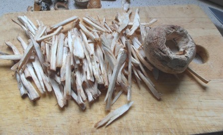 Mientras, limpiar y cortar las judías verdes y hervirlas. Pelar y cortar la zanahoria y cortar también los champiñones.