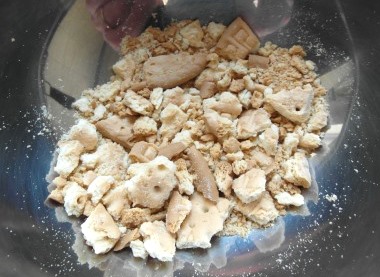 Trituramos bien las galletas y las colocamos en el fondo del vaso.