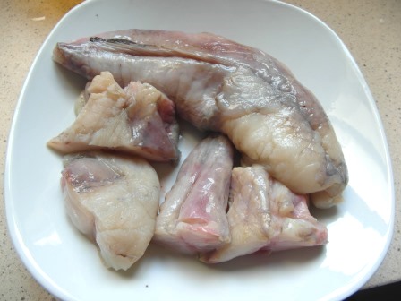 El rape es un pescado muy feo por su apariencia pero está riquísimo, cuando le quitamos la cabeza nos queda un cuerpo en forma de cono, con la parte superior ancha y la cola estrecha. Con la cabeza se hace un caldo de pescado muy bueno porque la piel es muy gruesa y produce un caldo estupendo.