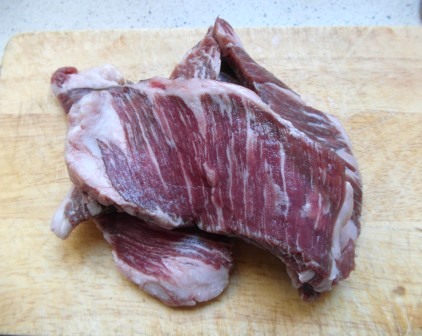 Cortamos los filetes en trocitos y pelamos y cortamos los dientes de ajo.