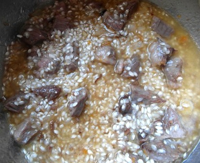 Añadimos agua y lo dejamos hervir hasta que esté el arroz casi tierno. Probamos de sal y rectificamos.
