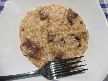 Para hacer este arroz contaba con salsa que me había sobrado de la que uso a veces para acompañar la carne. Se puede hacer también con salsa que nos haya sobrado de algún guiso de carne, solomillo, lomo de cerdo…