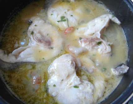 Ponemos las rodajas de merluza en la cazuela u olla y les damos la vuelta.