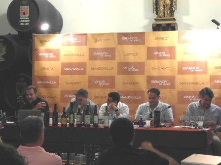 La mesa de participantes estuvo formada por Manuel Marín en representación de la Cooperativa Vitivinícola Virgen de Palomares de Trebujena. En la cata degustamos un mosto y un oloroso, ambos estupendos.