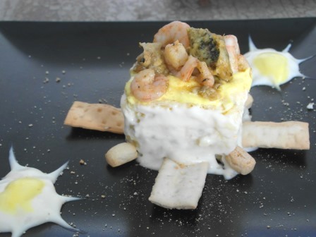 La segunda mención especial a la creatividad fue a la llamada Juan Palomo (yo me lo guiso y yo me lo como), presentada por el restaurante Arsenio Manila de Cádiz. Cada ingrediente va dentro de un recipiente y el cliente se hace su propia ensaladilla en un mortero.
