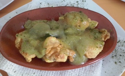 Empezamos por el bar del Mercado Central de La Merced donde Pepi y Alfonso, simpatiquísimos, nos atendieron de maravilla ofreciéndonos su Bacalao con crema de algas, del que tan orgulloso está Alfonso y con razón.