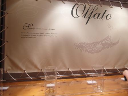 Durante la visita me llamó la atención la estancia que usan para las catas, donde de forma muy didáctica y práctica se aprende mucho sobre los sentidos que se usan a la hora de catar un vino: La vista, el olfato y el gusto. Las fases visual, olfativa y gustativa de la cata.