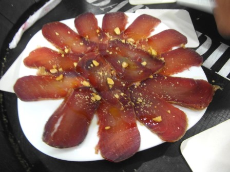 Para hacer la mojama se emplean los lomos del atún, que tras ser lavados se dejan en sal un tiempo, durante el cual la carne se encoje y pierde agua, y ya tenemos la mojama.