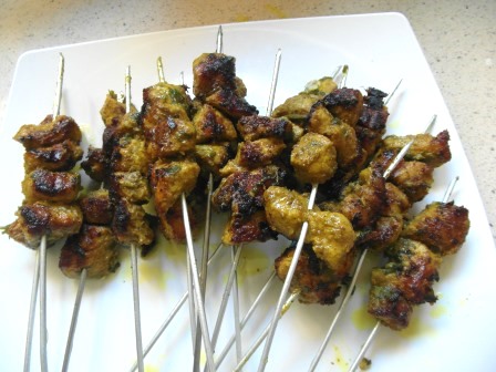 Pues en casa hacemos pinchitos con carne de cerdo de calidad, para que estén tiernos, y con un majado en el que dejamos un día completo la carne macerando y que le da un gusto exquisito.