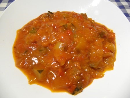 Hacemos un pisto con verduras, como en la receta que ya publiqué en su día pero sin patatas. Lo reservamos.
