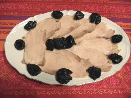 El contraste del sabor salado del lomo a la sal con el dulzón de las ciruelas y el puré de manzana resulta estupendo, al menos a todos los que lo prueban les gusta mucho.