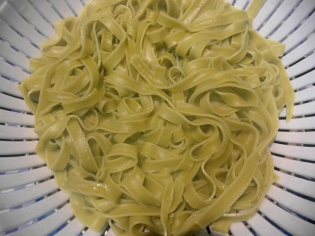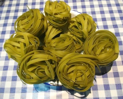 Este plato se puede hacer con cualquier tipo de pasta, tallarines, raviolis, macarrones…Yo he elegido este tipo de pasta en forma de cinta porque las tenía en mi despensa en su variedad verde, con espinacas, y me parecieron las más adecuadas para esta salsa.