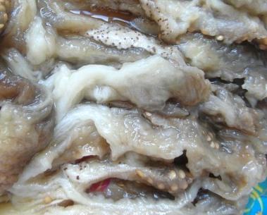 Metemos las berenjenas en el horno precalentado a 180º, las asamos, las dejamos enfriar y las pelamos.