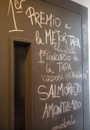 El primer premio a la mejor tapa en el concurso “Córdoba Gastronómica” con su Salmorejo amontillado en el año 2012. Realmente este salmorejo está buenísimo y por eso desde entonces sigue en la carta hasta la fecha actual.