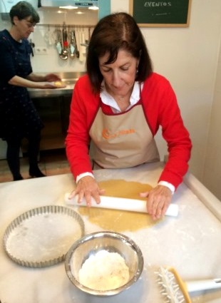 Mientras esperábamos que se horneara la masa Florence nos obsequió con unas tejas hechas por ella, de almendras y pistachos, buenísimas.