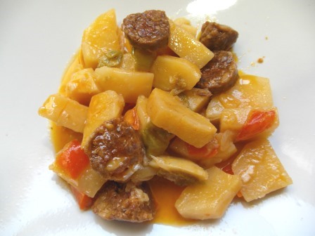 La receta de hoy es muy simple pero no por ello menos sabrosa, patatas con chorizo. Bien condimentados y elaborados dan como resultado un plato exquisito, lleno de nutrientes y sencillo de hacer.