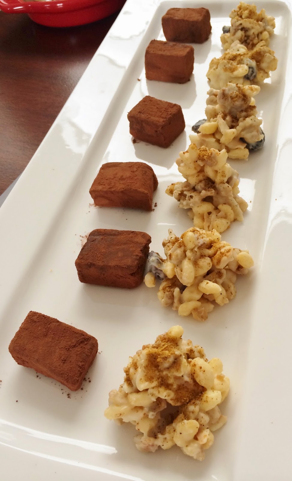 Y Trufas de chocolate negro y crujiente de chocolate blanco