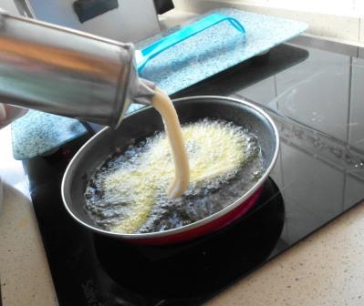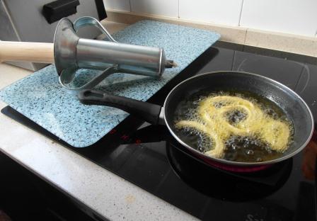 SAM_0406Se mete la masa en la churrera y calentamos aceite en una sartén, debiendo estar bien caliente.