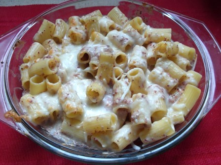 Calentamos el horno a 180º. Espolvoreamos la pasta con queso rallado y la metemos en el horno. Cuando se derrita éste último estará lista para tomar. Está deliciosa y a los amantes del queso les gustará muchísimo.