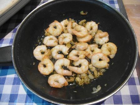 Para hacer las gambas al ajillo os remito a mi receta publicada anteriormente en este blog.