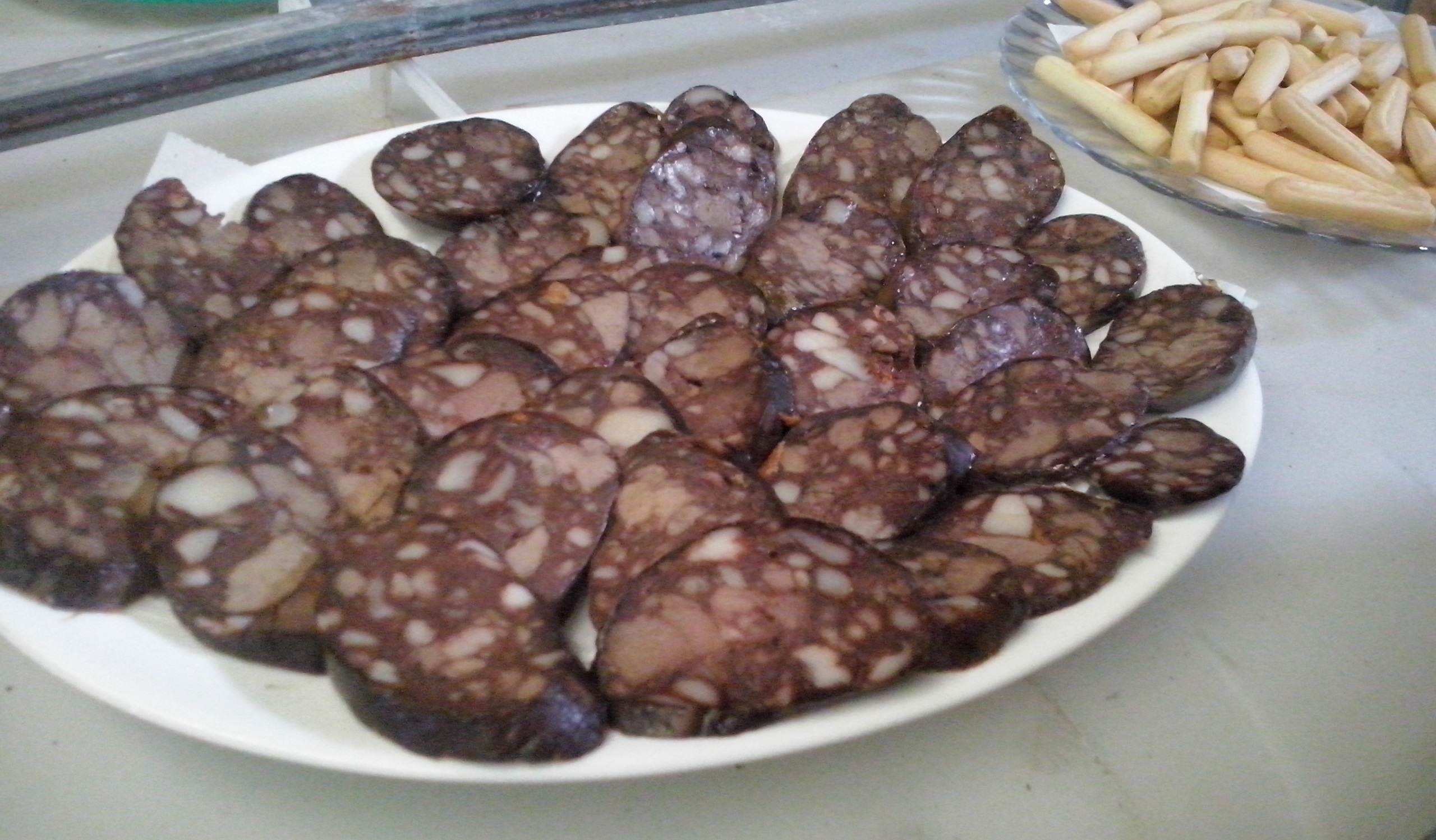 Chano tuvo la gentileza de invitarnos a comer en su bodega. Unos entremeses con chorizo y butifarra chiclaneros. Acompañada de vino blanco y un tinto dulce estupendo, a todos nos sorprendió este tinto con un ligero toque dulzón.