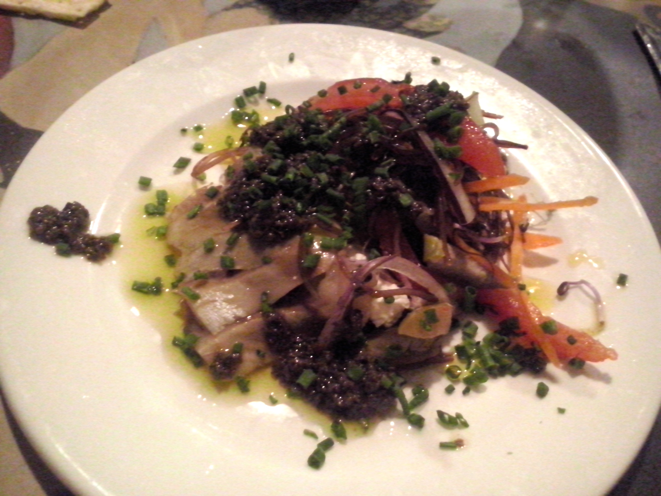 Paco Guzmán de nuevo se lució, sus platos están muy bien elaborados, cuidados hasta el último detalle, y lo principal, riquísimos. No estaba Gustavo Muñoz, el sumiller y director de sala, pero sí nos atendió maravillosamente Emilio, quien se acaba de incorporar al Tragaluz, procedente de La Pepa, también en Rota, y que estudió en la Escuela de Hostelería de Cádiz, que tan buenos alumnos y profesionales ha dado y tan maltratada está en la actualidad.