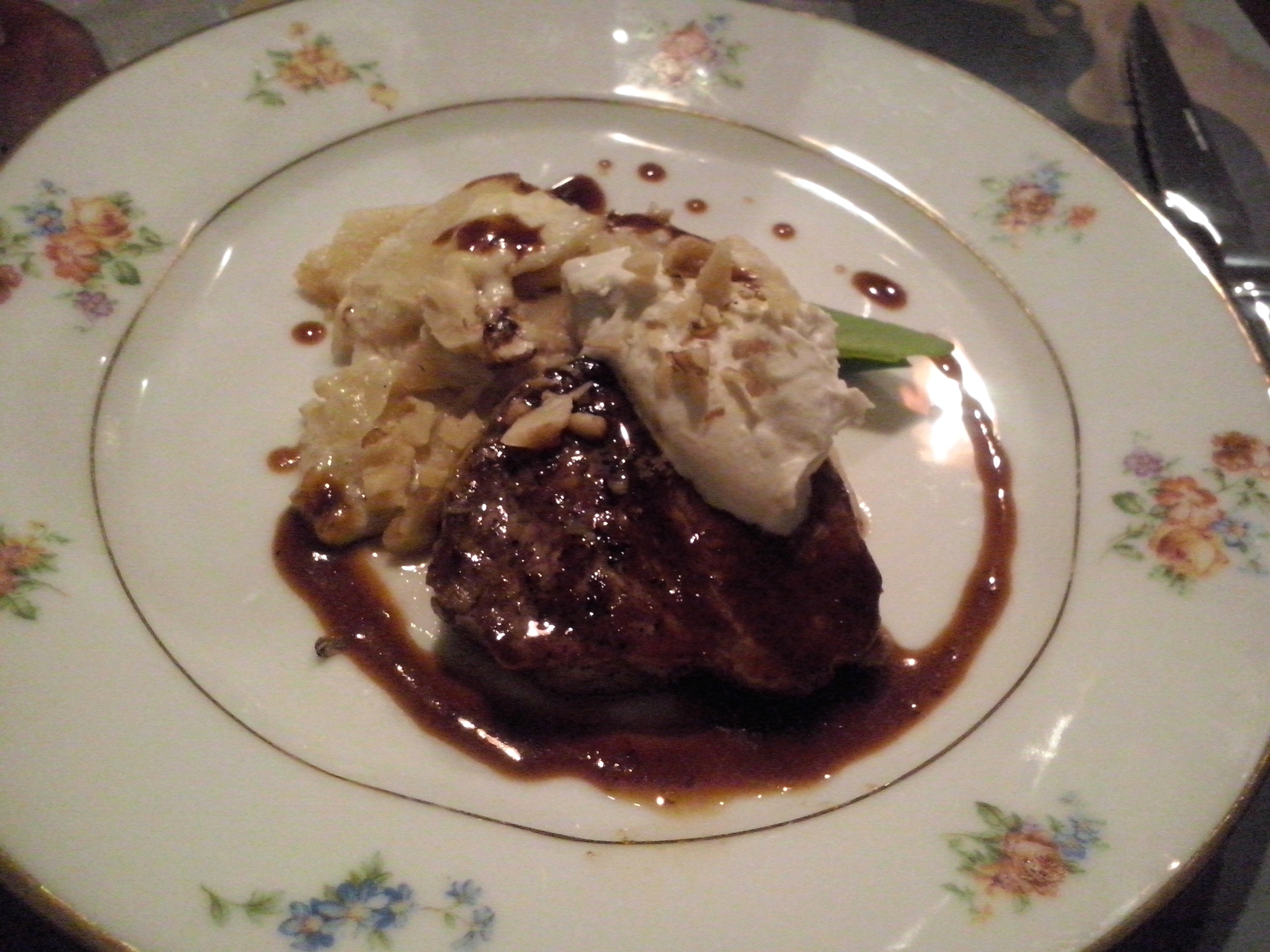 Lomo de ternera madurado, gratén de patata y crema de queso azul al amontillado