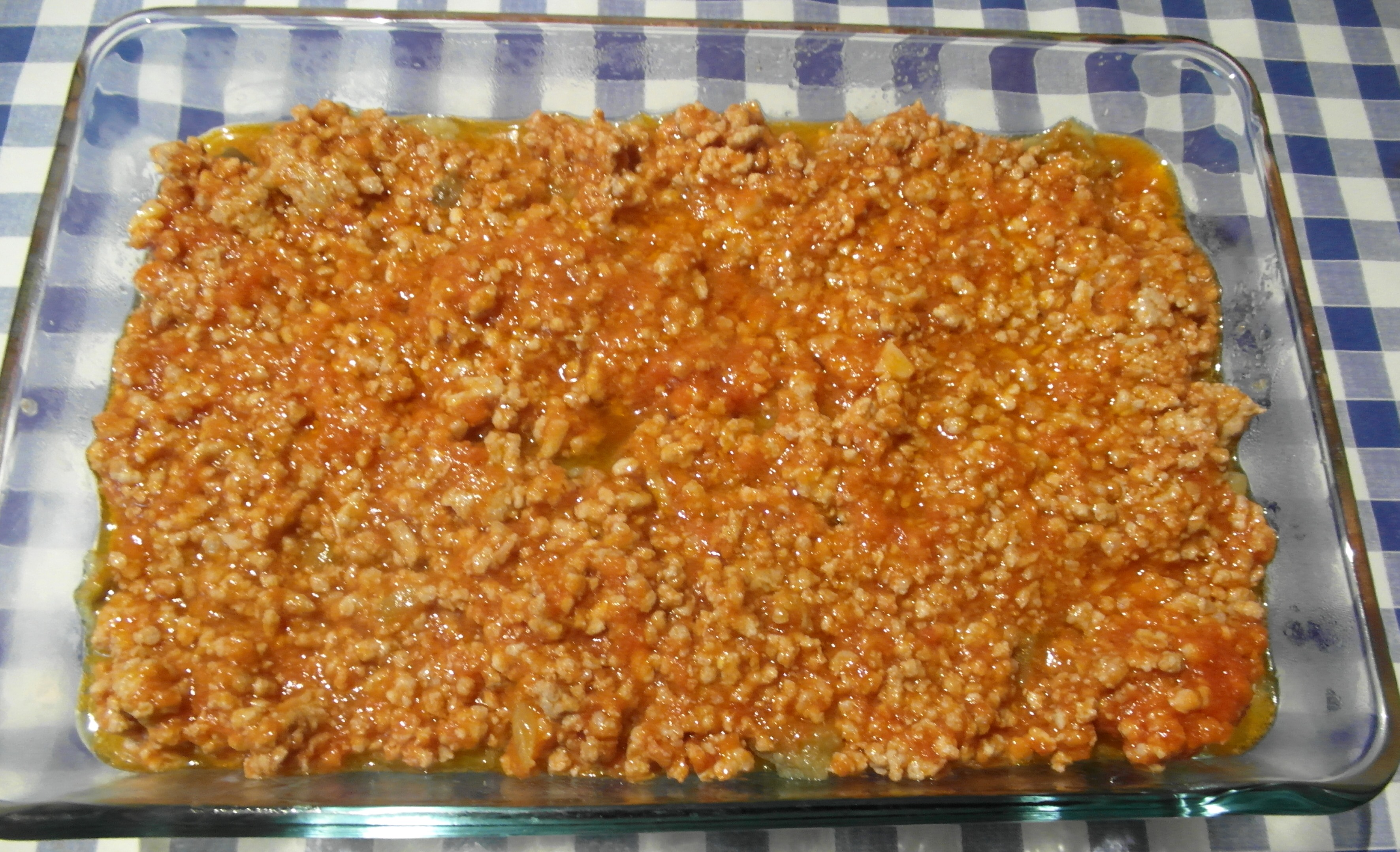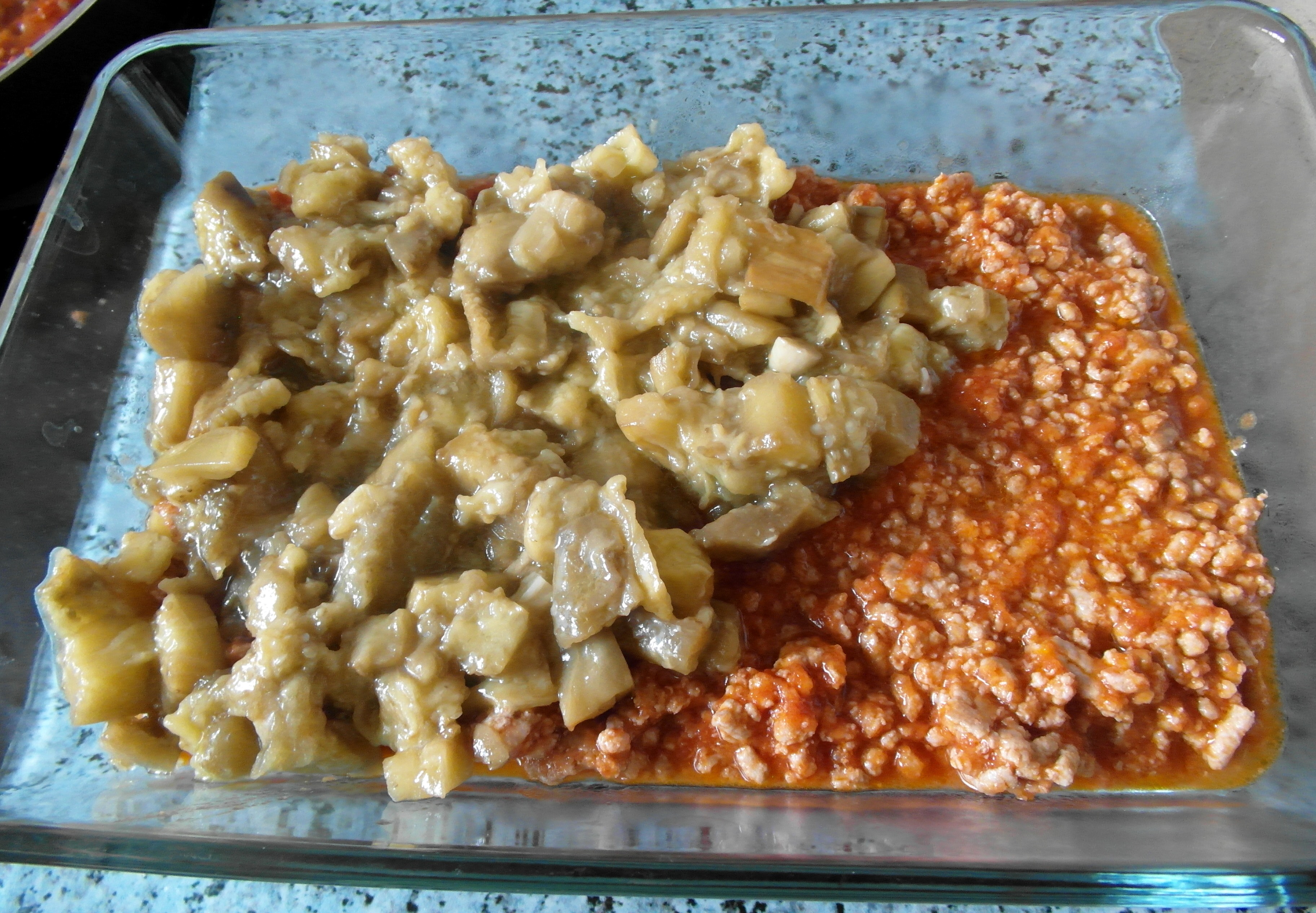 En mi caso la capa inferior era de carne, encima una de berenjena y por último otra de carne.