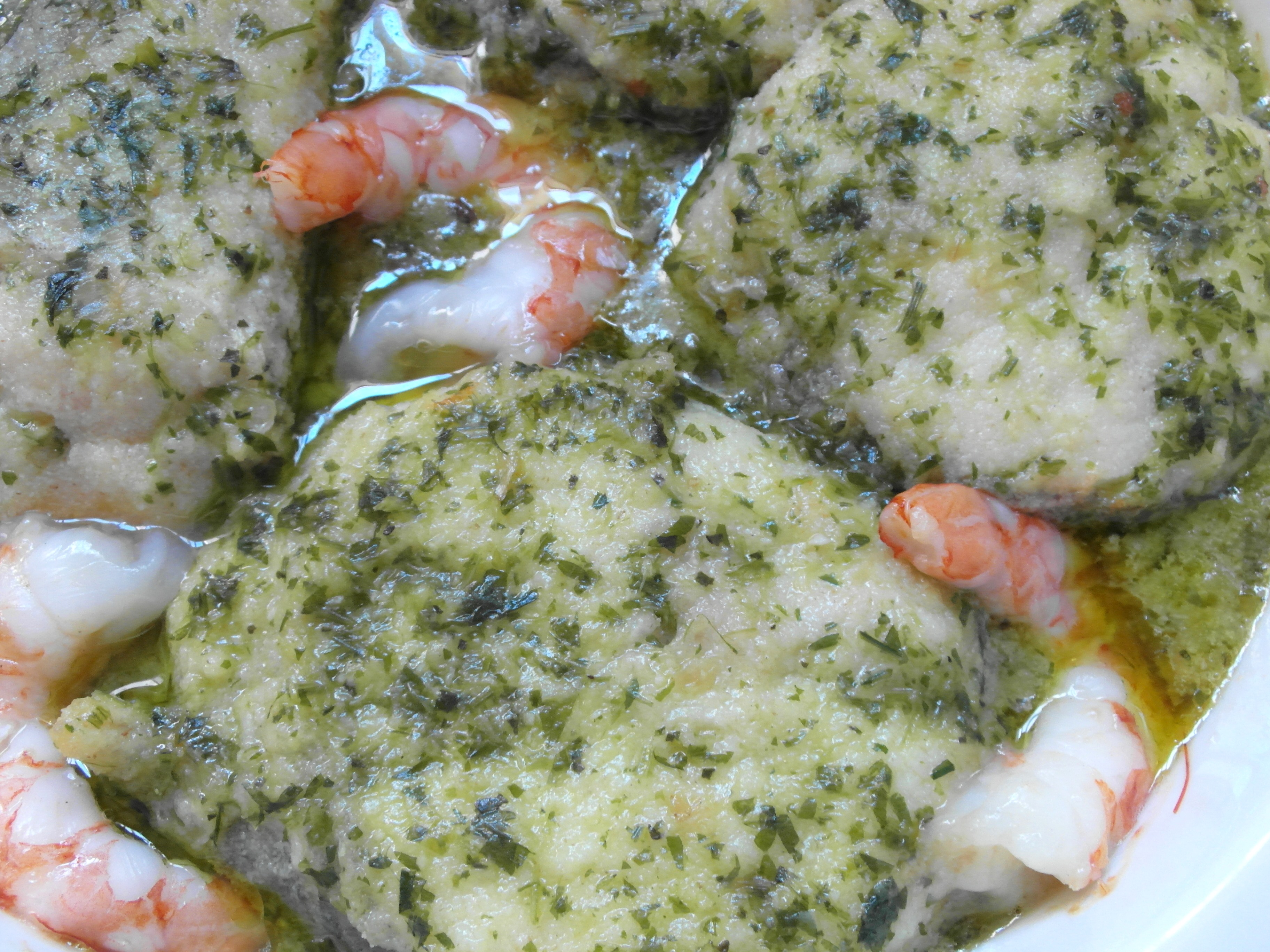 Qué unión más acertada la de la merluza con gambas o gambones, si además añadimos unas almejitas mejor áun. Pero no tenía en casa almejas así que ahí va esta receta tan rica e igual de buena.