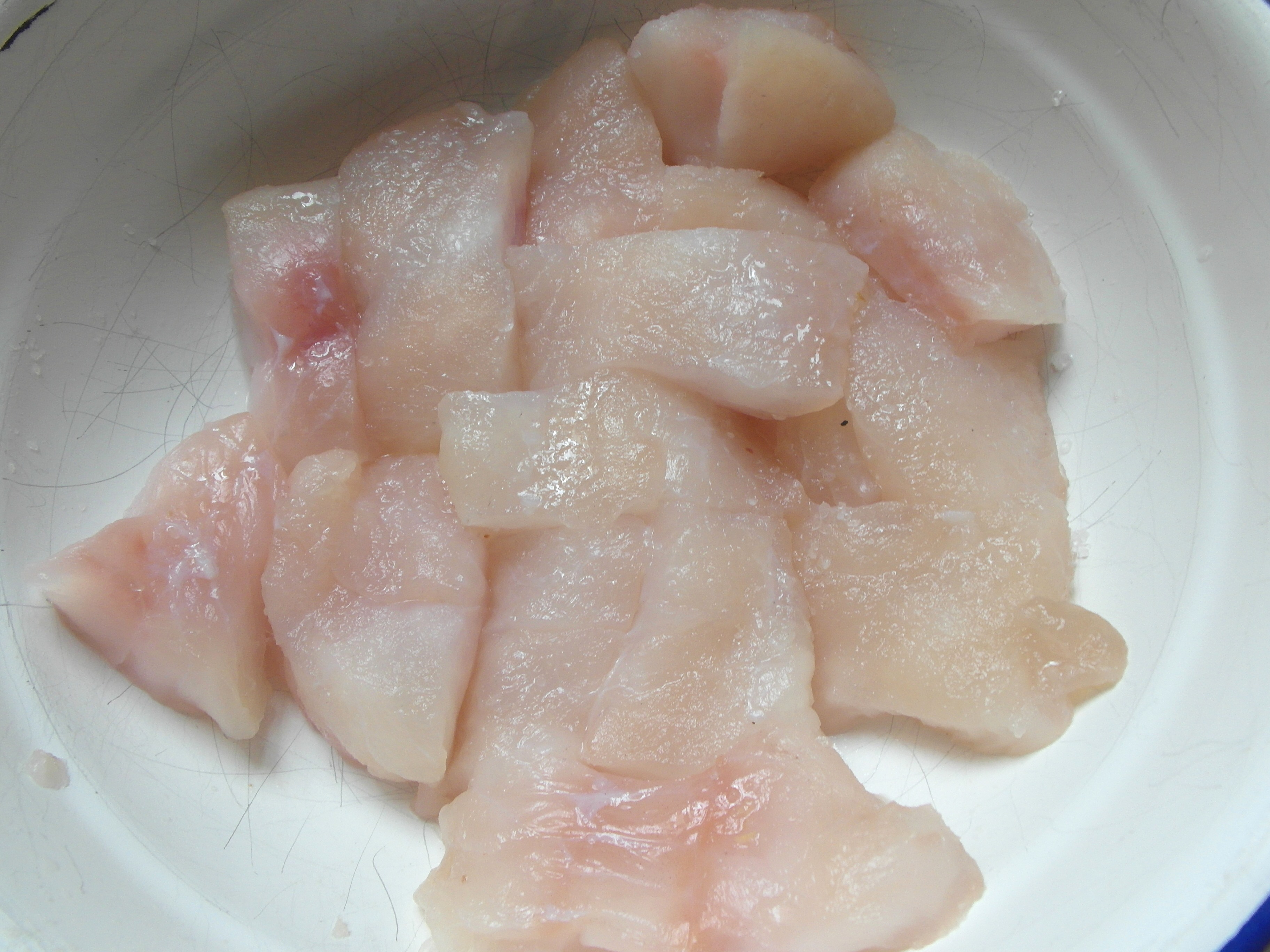 En primer lugar troceamos la gallineta y echamos sal y zumo de limón.