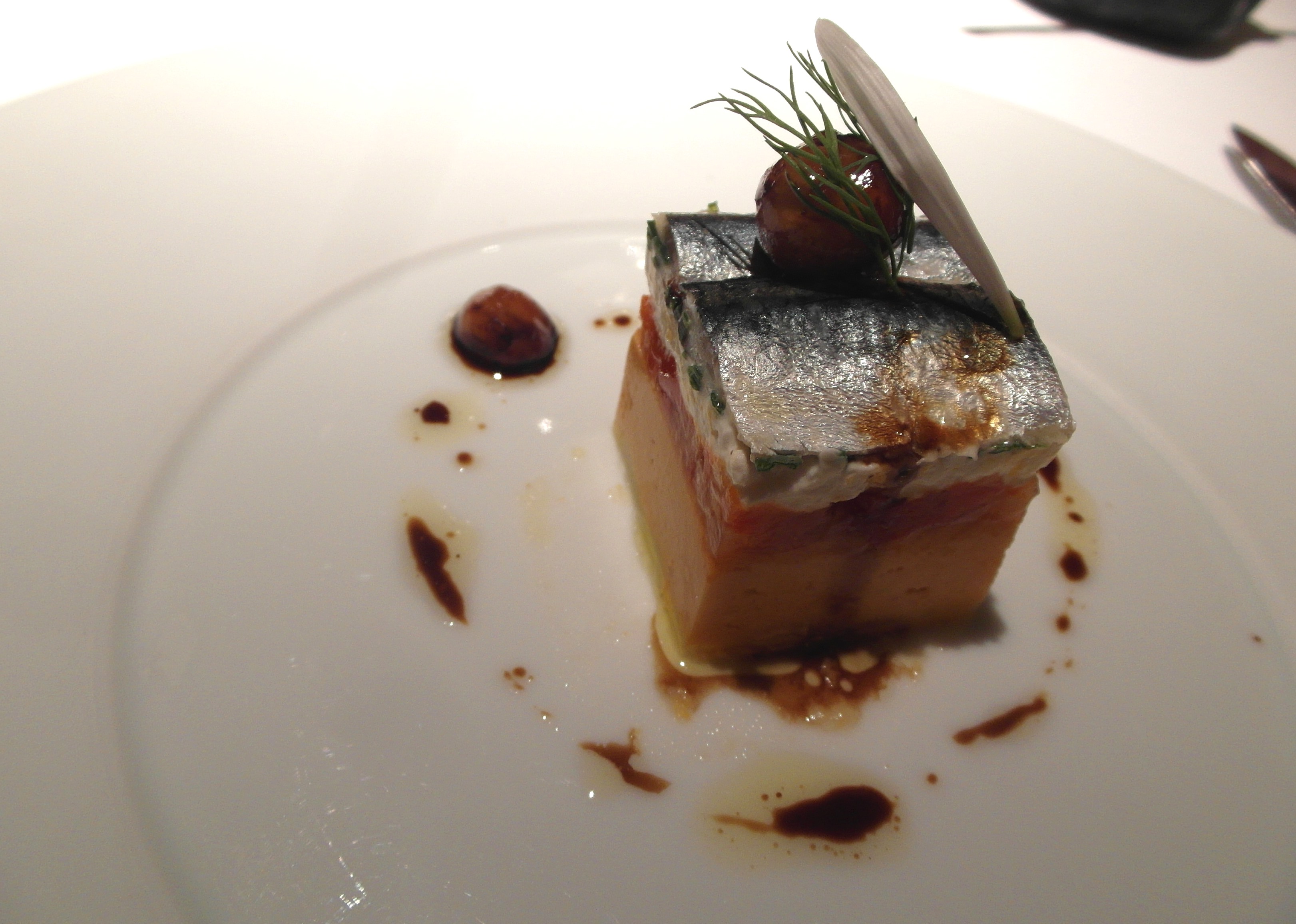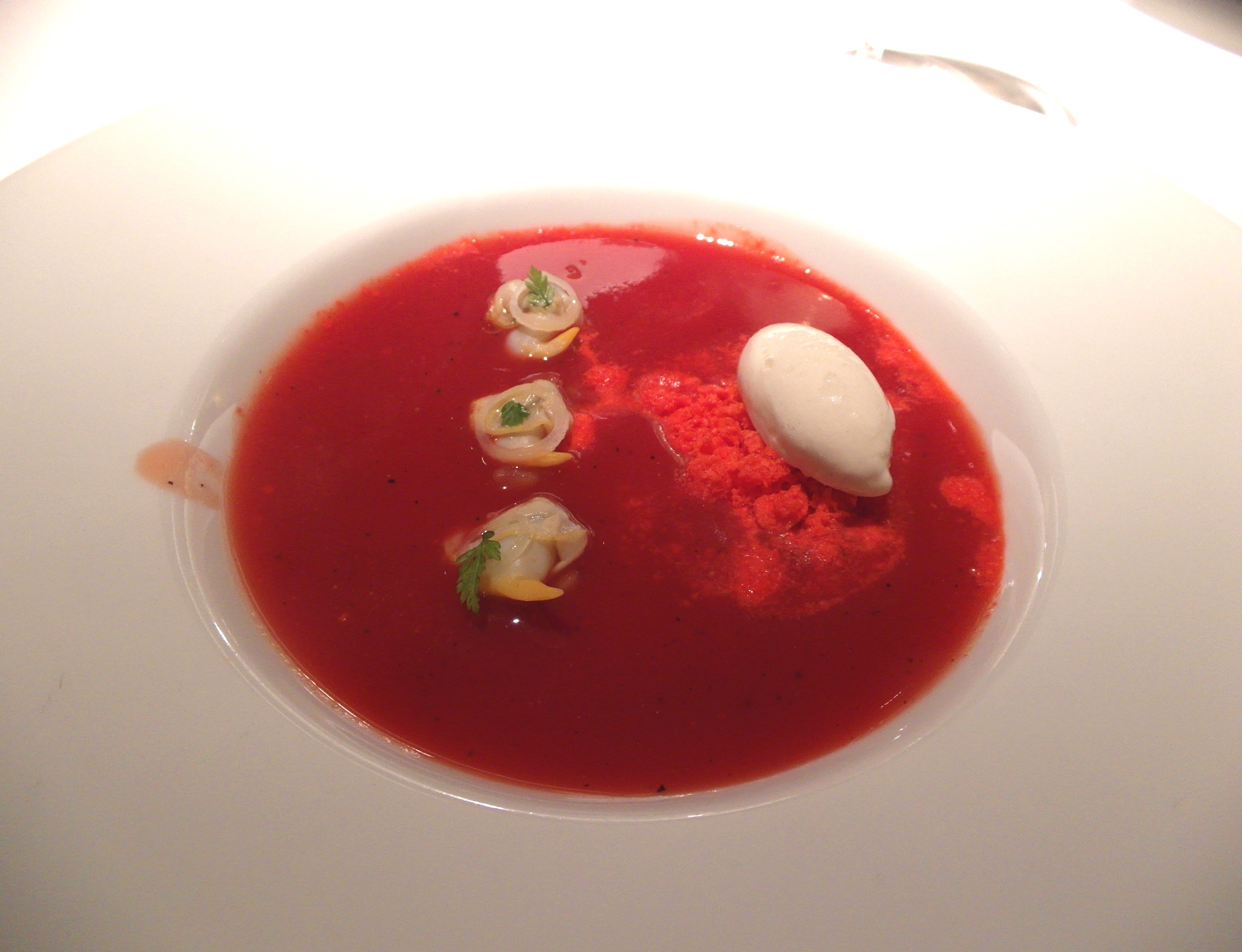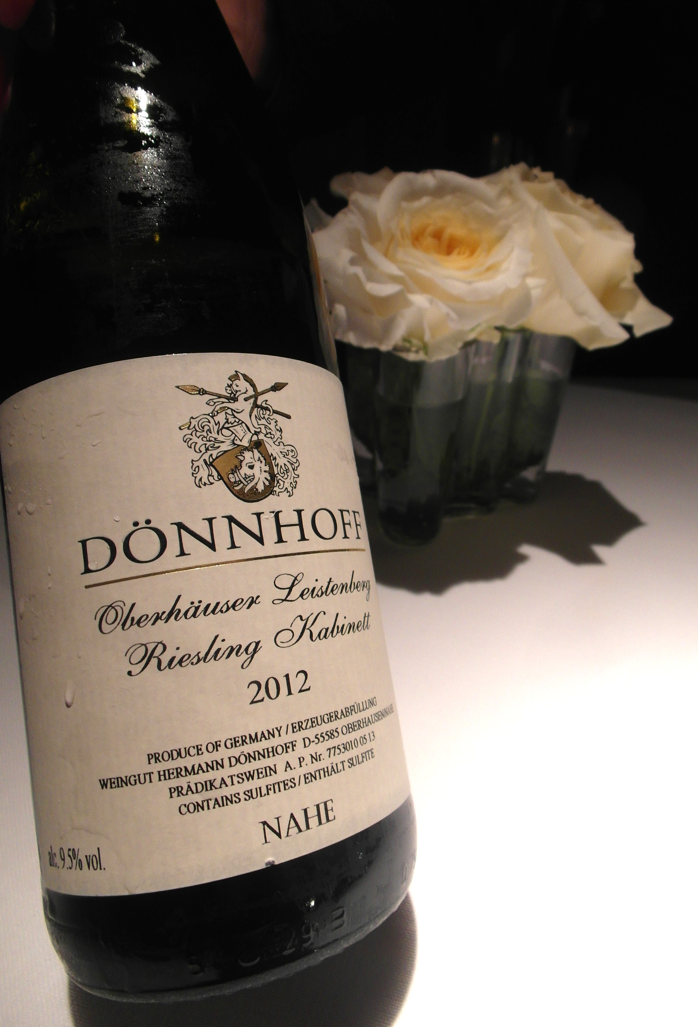 El menú consta de catorce platos que acompañamos con un vino blanco Riesling 2012, Dönnhoff, excelente.