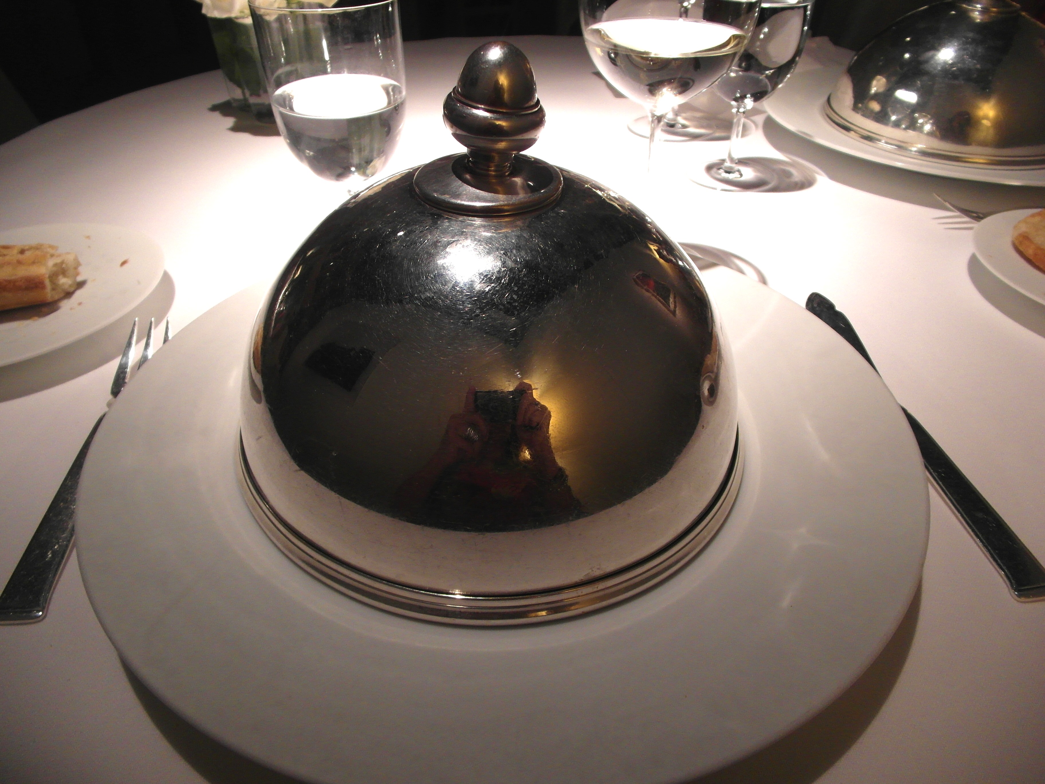 Otro detalle queme gustó muchísimo es que todos los platos llegaban de cocina con cubreplatos, para guardar el calor y protegerlos hasta llegar a la mesa. Además de su finalidad práctica son preciosos, de varios diseños, otro deleite para los sentidos.