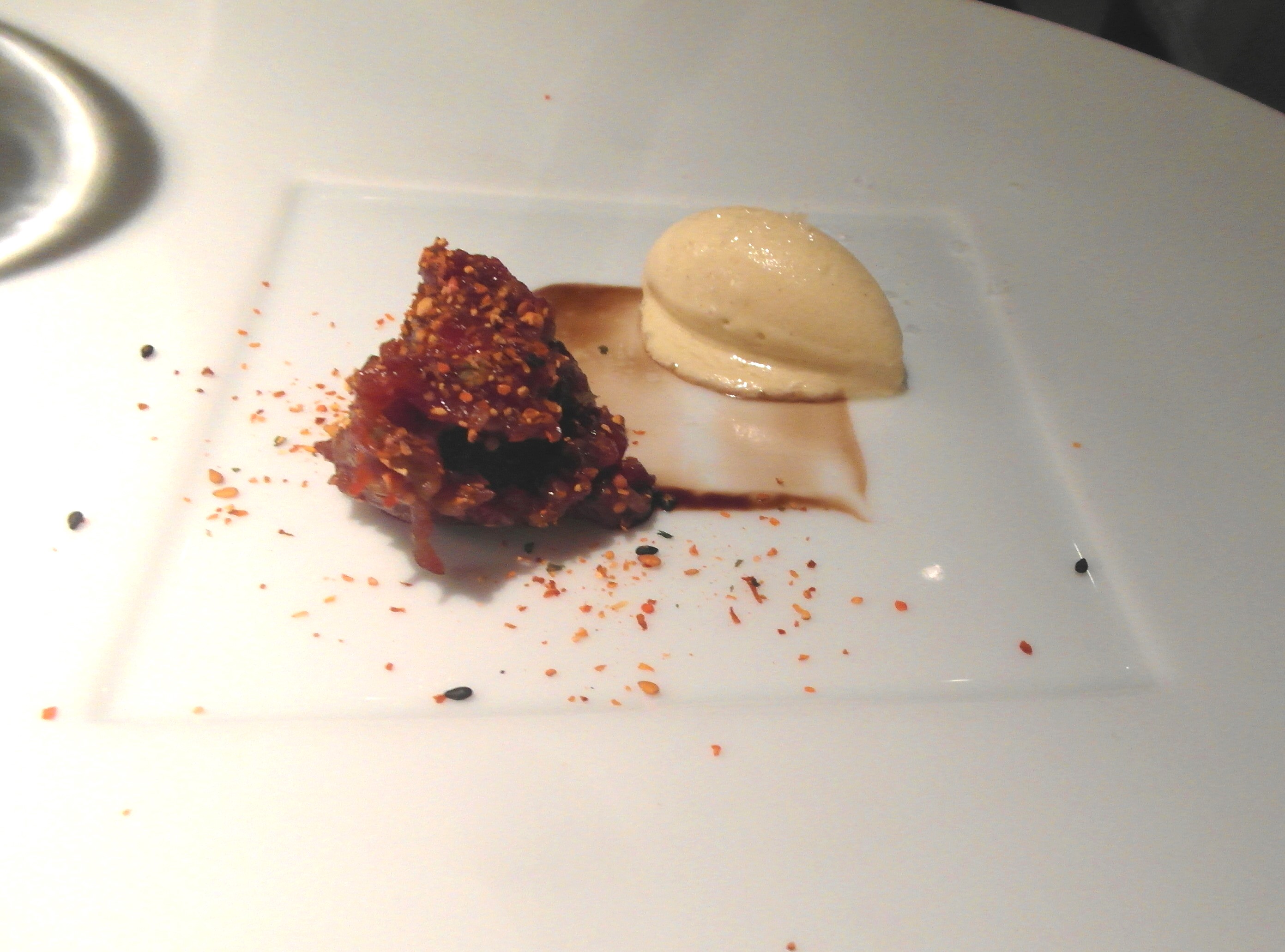 Solomillo de retinto en tartar con sorbete de mostaza