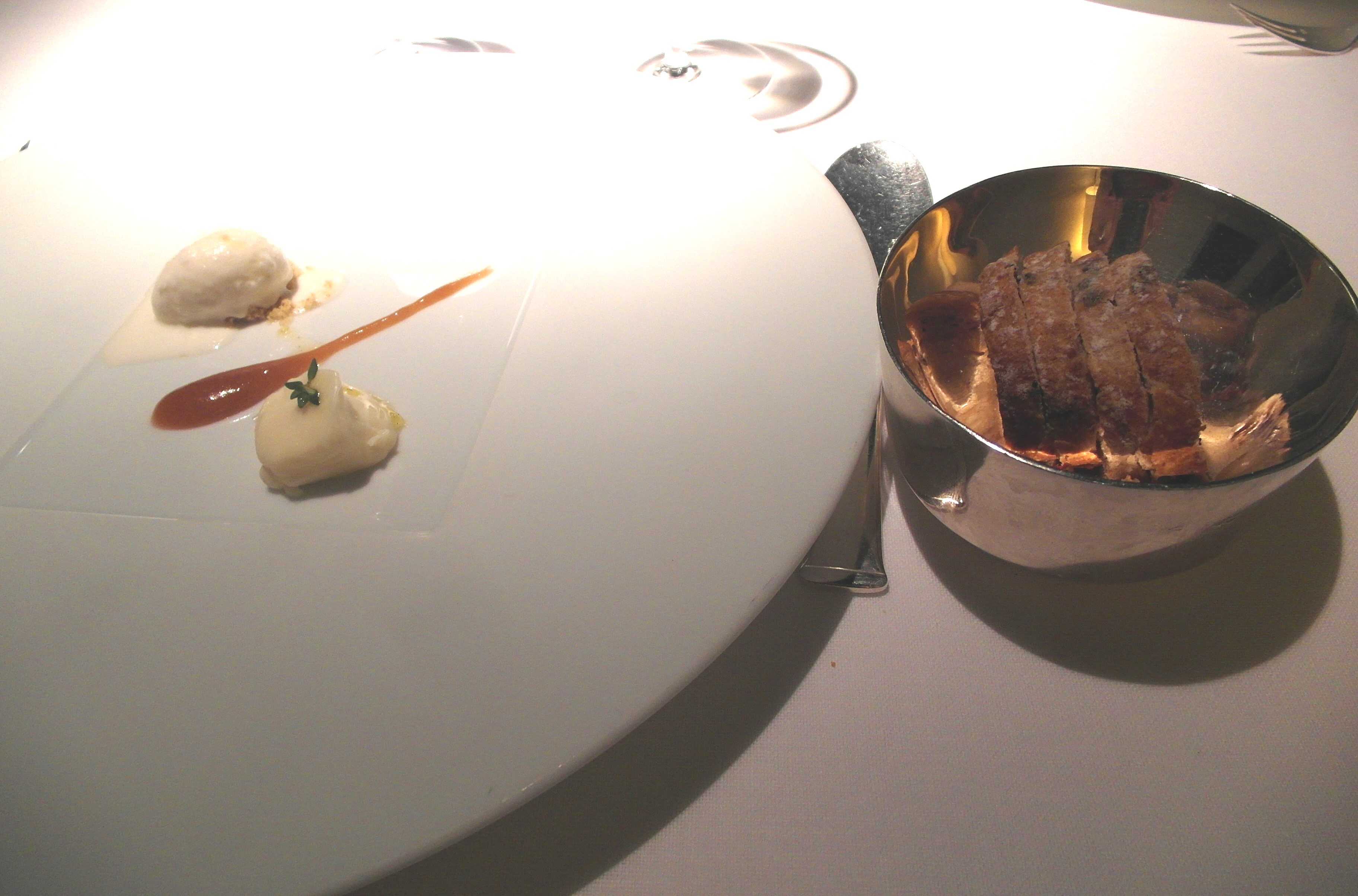 Detalles como los manteles y servilletas de hilo, la preciosa cristalería, la vajilla y la cubertería con sus firmas hacen de esta experiencia un deleite. Son los pequeños detalles, y no tan pequeños, los que pueden hacer que una experiencia sea un éxito o un fracaso. Un mantel y servilletas de papel, cubiertos y vajillas del montón, o un plato o copa manchados llevan a poner el «No me gusta» a un restaurante por bien que se coma en él. Se come bien en muchos otros y además cuidan los detalles, así que a la hora de elegir, nos inclinamos por el que cuida esos «pequeños» aspectos.