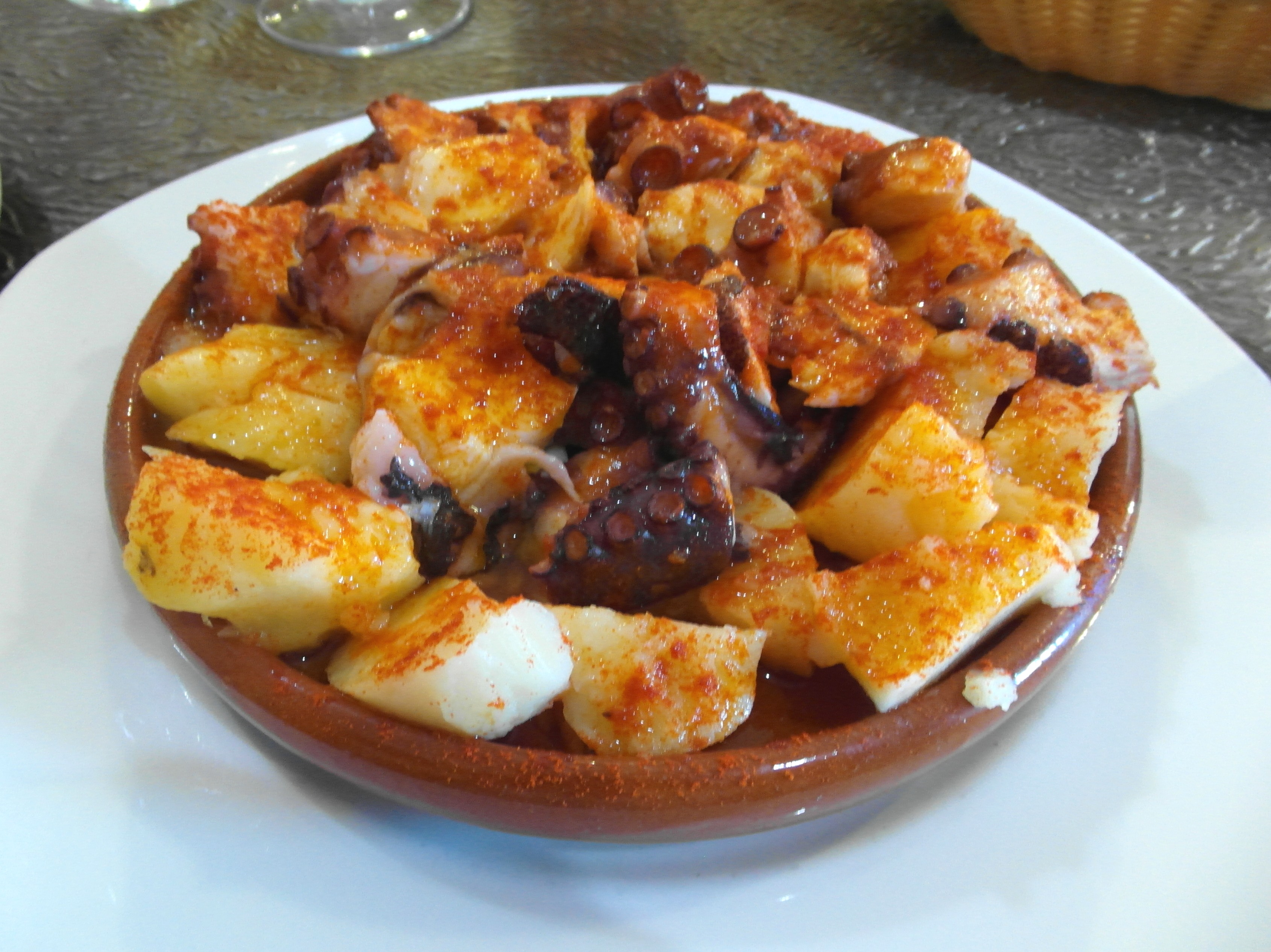 En el Bierzo hay varias zonas donde comer y en algunas de ellas, por su cercanía con Galicia, se puede tomar un pulpo exquisito. En Cacabelos visitamos las Bodegas Cuatro Pasos, de la que escribiré en otra ocasión, y allí tomamos un pulpo a Feira de los mejores que he probado en mi vida.