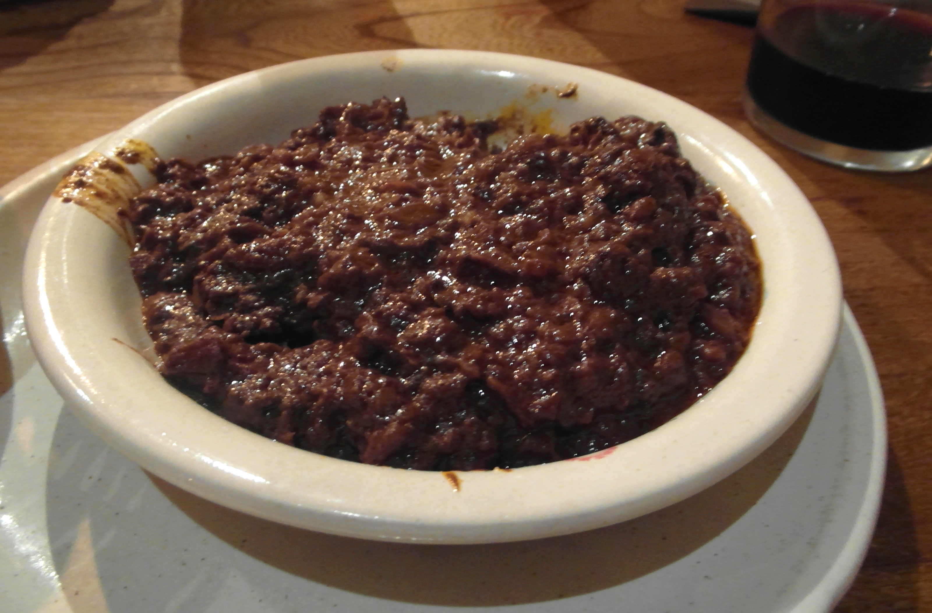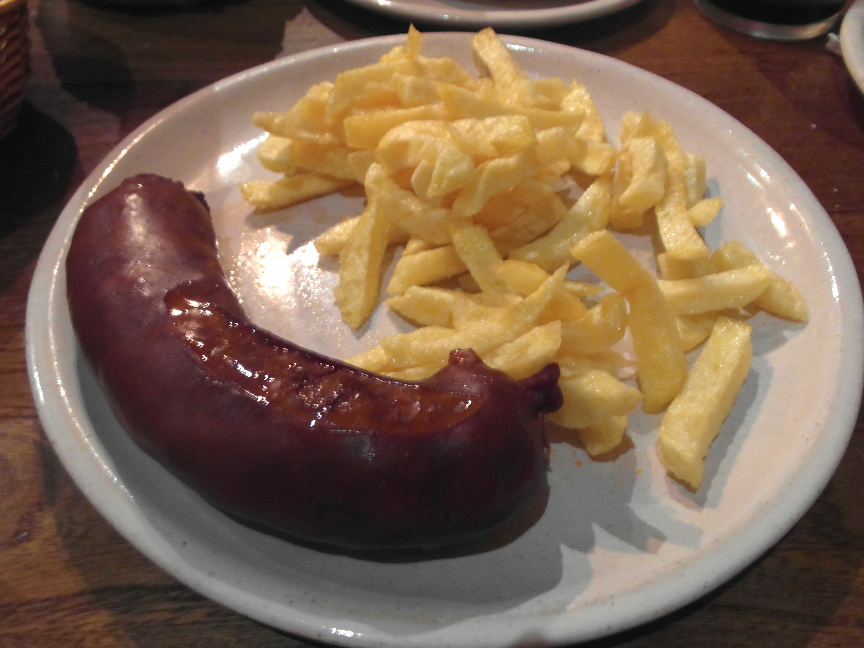 Enfrente hay un bar muy pequeño que siempre tiene el cartel de «Aforo completo», letrero que lo distingue de los demás, especializado en morcilla desmenuzada y a la plancha, buenísima acompañada de buen pan.